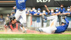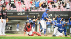 [OSEN=광주,박준형 기자] 25일 광주기아챔피언스필드에서 '2021 신한은행 SOL KBO 리그' KIA 타이거즈와 삼성 라이온즈의 경기가 진행됐다.9회초 2사 만루 박해민의 만루 폭투때 3루 주자 구자욱이 역전 득점 성공하고 있다. / soul1014@osen