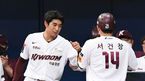 [OSEN=고척, 김성락 기자] 25일 오후 서울 고척스카이돔에서 '2021 신한은행 SOL KBO리그' 키움 히어로즈와 SSG 랜더스의 경기가 열렸다.4회말 2사 1루 키움 김웅빈의 선취 1타점 적시 2루타 때 1루 주자 서건창이 홈을 밟은 뒤 더그아웃