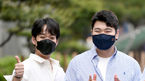 [OSEN=김성락 기자] 26일 오후 서울 영등포구 여의도 KBS에서 미라클라스 김주택, 정필립이 녹화를 위해 출근하며 포즈를 취하고 있다./ksl0919@osen.co.kr