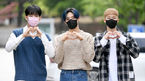 [OSEN=김성락 기자] 26일 오후 서울 양천구 목동 SBS에서 피원하모니(P1Harmony) 인탁, 기호, 지웅이 녹화를 위해 출근하며 포즈를 취하고 있다./ksl0919@osen.co.kr