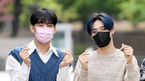 [OSEN=김성락 기자] 26일 오후 서울 양천구 목동 SBS에서 피원하모니(P1Harmony) 인탁, 기호가 녹화를 위해 출근하며 포즈를 취하고 있다./ksl0919@osen.co.kr