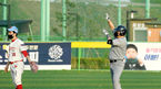 [OSEN=곽영래 기자] 26일 오후 경기도 고양시 장항야구장에서 '제15회 고양-한스타 SBO 연예인야구리그’가 진행됐다.공놀이야 어현규가 밀어내기 볼넷으로 타점을 올리고 있다. /youngrae@osen.co.kr