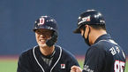 [OSEN=고척, 민경훈 기자] 27일 오후 서울 고척 스카이돔에서 ‘2021 신한은행 SOL KBO 리그’키움 히어로즈와 두산 베어스의 경기가 열렸다.1회초 2사 주자 1,3루 두산 김재호가 우익수 오른쪽 1타점 적시타를 날린 후 1루에서 김