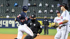 [OSEN=잠실, 지형준 기자] 22일 오후 서울 잠실야구장에서 ‘2021 신한은행 SOL KBO리그’ LG 트윈스와 KIA 타이거즈의 경기가 열렸다.3회초 1사에서 롯데 손아섭이 1루 내야안타를 날리고 LG 라모스에 앞서 1루 베이스를 밟고 있