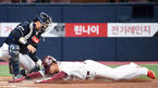 [OSEN=고척, 민경훈 기자] 27일 오후 서울 고척 스카이돔에서 ‘2021 신한은행 SOL KBO 리그’ 키움 히어로즈와 두산 베어스의 경기가 열렸다.2회말 무사 주자 1,3루 키움 송우현의 좌익수 희생플라이때 김웅빈이 홈으로 몸을 던