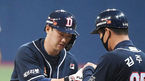 [OSEN=고척, 민경훈 기자] 27일 오후 서울 고척 스카이돔에서 ‘2021 신한은행 SOL KBO 리그’키움 히어로즈와 두산 베어스의 경기가 열렸다.1회초 2사 주자 1,3루 두산 김재호의 우익수 오른쪽 1타점 적시타때 홈을 밟은 김재환