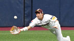 [OSEN=고척, 민경훈 기자] 27일 오후 서울 고척 스카이돔에서 ‘2021 신한은행 SOL KBO 리그’키움 히어로즈와 두산 베어스의 경기가 열렸다.1회초 2사 주자 2,3루 두산 김인태의 타구를 키움 좌익수 이용규가 다이빙캐치를 하고