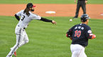 [OSEN=잠실, 최규한 기자] 28일 오후 서울 잠실야구장에서 ‘2021 신한은행 SOL KBO리그’ LG 트윈스와 롯데 자이언츠의 경기가 열렸다.3회말1사 1루 상황 LG 김현수의 삼진 때 2루로 뛴 주자 홍창기가 롯데 유격수 마차도의 태그