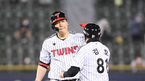 [OSEN=잠실, 박준형 기자] 29일 오후 서울 잠실야구장에서 ‘2021 신한은행 SOL KBO리그’ LG 트윈스와 롯데 자이언츠의 경기가 열렸다.8회말 2사 1,2루 LG 김현수에게 역전 2타점 적시 2루타를 허용한 롯데 김원중 투수가 아쉬워