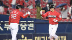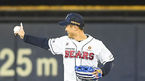 [OSEN=잠실,박준형 기자] 1일 오후 서울 잠실구장에서 2021 신한은행 SOL KBO리그 두산 베어스와 SSG 랜더스의 경기가 진행됐다.연장 12회초 2사 1,2루 SSG 박성한이 역전 3점 홈런을 날리고 손을 들어보이고 있다../ soul1014@osen.co.kr
