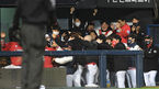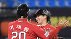 [OSEN=잠실,박준형 기자] 1일 오후 서울 잠실구장에서 2021 신한은행 SOL KBO리그 두산 베어스와 SSG 랜더스의 경기가 진행됐다.연장 12회초 2사 1,2루 SSG 박성한이 역전 3점 홈런을 날리고 동료들의 축하를 받고 있다./ soul1014@osen.co.kr