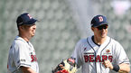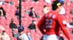 [OSEN=잠실,민경훈 기자] 2일 오후 서울 잠실구장에서 2021 신한은행 SOL KBO리그 두산 베어스와 SSG 랜더스의 경기가 열렸다.경기 전 두산 허경민의 아버지 허경남씨가 허경민에게 시구를 하고 있다. / rumi@osen.co.kr