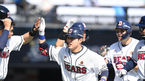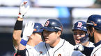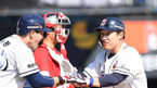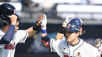 [OSEN=잠실,민경훈 기자] 2일 오후 서울 잠실구장에서 2021 신한은행 SOL KBO리그 두산 베어스와 SSG 랜더스의 경기가 열렸다.4회말 1사 주자 1,2루 두산 김인태가 좌월 역전 스리런 홈런을 날린 후 홈을 밟으며 기뻐하고 있다./ rumi@osen.c