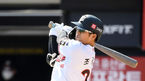 [OSEN=수원 , 곽영래 기자] 2일 오후 수원 KT위즈파크에서 '2021 신한은행 SOL KBO리그' KT 위즈와 KIA 타이거즈의 경기가 열렸다.4회말 1사 1,2루 KT 신본기가 내야 안타를 때려내고 있다. /youngrae@osen.co.kr