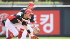 [OSEN=수원 , 곽영래 기자] 2일 오후 수원 KT위즈파크에서 '2021 신한은행 SOL KBO리그' KT 위즈와 KIA 타이거즈의 경기가 열렸다.2회말 1사 KIA 박찬호가 KT 장성우의 타구를 잡아 1루로 송구하고 있다. /youngrae@osen.co.kr