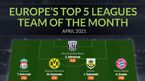 [OSEN=이균재 기자] 지난달 유럽 5대리그서 최고의 활약을 펼친 11명이 베일을 벗었다.유럽축구통계업체 후스코어드닷컴은 6일(한국시간) 공식 채널에 유럽 5대리그 4월의 팀을 공개했다.4-4-2 포메이션에서 최전방 투톱 공격수로