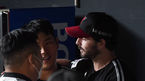 [OSEN=잠실,박준형 기자] 6일 오후 서울 잠실구장에서 '2021 신한은행 SOL KBO리그' 두산 베어스와 LG 트윈스의 경기가 진행됐다.7회말 두산 공격을 막은 LG 수아레즈 선발투수가 이닝종료 후 더그아웃에서 유강남 포수와 어깨동무를