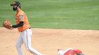 [OSEN=서산, 곽영래 기자] 7일 오후 충청남도 서산 한화이글스 서산구장에서 ‘2020 퓨처스리그’ 한화 이글스와 SSG 랜더스의 경기가 열렸다.3회초 2사 1루 한화 정민규가 SSG 전의산의 내야 타구를 잡아내고 있다. /youngrae@osen.