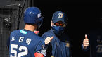 [OSEN=수원, 민경훈 기자] 9일 오후 경기도 수원시 수원kt위즈파크에서 ‘2021 신한은행 SOL KBO 리그’ KT 위즈와 NC 다이노스의 DH1 경기가 열렸다.6회초 2사 주자 1,2루 NC 노진혁이 투런홈런을 날린 후 덕아웃에서 이동욱 감독과