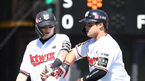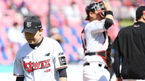 [OSEN=수원, 민경훈 기자] 9일 오후 경기도 수원시 수원kt위즈파크에서 ‘2021 신한은행 SOL KBO 리그’ KT 위즈와 NC 다이노스의 DH1 경기가 열렸다.1회말 1사 주자 1루 KT 강백호가 우월 투런 홈런을 날린 후 홈을 밟고 있다./rumi@ose
