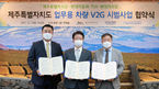 [OSEN=강희수 기자]현대차와 기아, 현대캐피탈이 지난 7일, 제주특별자치도와 함께 ‘제주특별자치도 업무용 차량 V2G 시범사업 업무협약’을 체결했다.제주도청에서 진행된 MOU 체결식에는 제주특별자치도 최승현 행정부
