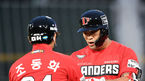 [OSEN=부산, 이대선 기자] 11일 오후 부산 사직야구장에서 ’2021 신한은행 SOL KBO 리그' 롯데 자이언츠와 SSG 랜더스의 경기가 열렸다.2회초 무사에서 SSG 정의윤이 중전 안타를 치고 조동화 코치와 하이파이브를 하고 있다. /sunday@