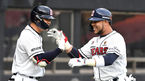 [OSEN=잠실, 최규한 기자] 11일 오후 서울 잠실야구장에서 ‘2021 신한은행 SOL KBO리그’두산 베어스와 키움 히어로즈의 경기가 열렸다.1회말 2사 주자없는 상황 두산 페르난데스가 선제 우월 솔로포를 날리고 김재환과 인사