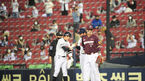 [OSEN=잠실,박준형 기자] 12일 오후 서울 잠실야구장에서 ‘2021 신한은행 SOL KBO리그’두산 베어스와 키움 히어로즈의 경기가 진행됐다.8회말 두산 선두타자 대타 허경민이 안타를 날리고 1루 코치와 하이파이브를 하고 있다
