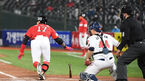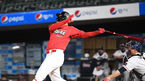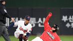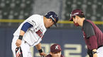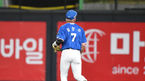 [OSEN=잠실,박준형 기자] 12일 오후 서울 잠실야구장에서 ‘2021 신한은행 SOL KBO리그’두산 베어스와 키움 히어로즈의 경기가 진행됐다.7회말 1사 두산 양석환이 2루타를 날리고 전병우 유격수 스파이크를 긁은뒤 미안함을