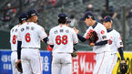 [OSEN=부산, 이대선 기자] 12일 오후 부산 사직야구장에서 ’2021 신한은행 SOL KBO 리그' 롯데 자이언츠와 SSG 랜더스의 경기가 열렸다.경기에 앞서 롯데 나승엽이 그라운드로 나가며 동료들과 하이파이브를 하고 있다. /sunday@osen.c