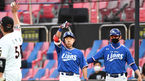 [OSEN=수원, 최규한 기자] 12일 오후 서울 고척스카이돔에서 ‘2021 신한은행 SOL KBO리그’ KT 위즈와 삼성 라이온즈의 경기가 열렸다.2회초 1사 2루 상황 삼성 송준석이 안타를 날리고 1루에 안착해 세리머니를 하고 있다. / dream