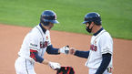[OSEN=부산, 이대선 기자] 12일 오후 부산 사직야구장에서 ’2021 신한은행 SOL KBO 리그' 롯데 자이언츠와 SSG 랜더스의 경기가 열렸다.1회초 2사에서 SSG 추신수가 우월 솔로 홈런을 치고 홈에서 최정의 축하를 받고 있다. /sunday@osen