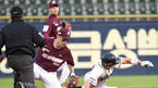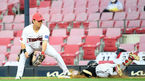 [OSEN=잠실, 최규한 기자] 13일 오후 서울 잠실야구장에서 ‘2021 신한은행 SOL KBO리그’ 두산 베어스와 키움 히어로즈의 경기가 열렸다.2회말 무사 선두타자로 나선 두산 김재환의 내야 땅볼 때 송구 실책으로 타자주자를 출