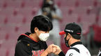 [OSEN=광주, 이선호 기자] "첫 승 챙겨주지 못해 아쉽다"LG는 13일 광주-기아 챔피언스필드에서 열린 '2021 신한은행 SOL KBO리그' KIA 타이거즈와의 경기에서 투수진의 계투와김재성의 데뷔 첫 홈런, 채은성의 쐐기 투런포를앞