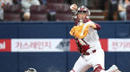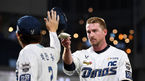 [OSEN=창원, 이대선 기자] 14일 오후 경상남도 창원NC파크에서 ’2021 신한은행 SOL KBO 리그' NC 다이노스와 KIA 타이거즈의 경기가 열렸다.6회초 2사 1루에서 KIA 최원준을 내야땅볼로 처리한 NC 파슨스가 횐호하고 있다. /sunday@osen.co.k