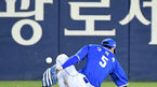[OSEN=창원, 이대선 기자] 14일 오후 경상남도 창원NC파크에서 ’2021 신한은행 SOL KBO 리그' NC 다이노스와 KIA 타이거즈의 경기가 열렸다.4회초 2사 1루에서 NC 박석민이 KIA 김선빈을 땅볼로 처리하고 있다. /sunday@osen.co.kr