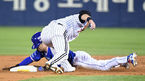 [OSEN=잠실, 지형준 기자] 14일 오후 서울 잠실야구장에서 ‘2021 신한은행 SOL KBO리그’ LG 트윈스와 삼성 라이온즈의 경기가 열렸다.5회초 무사 1루에서 삼성 김지찬이 LG 정주현의 태그에 앞서 2루 도루에 성공하고 있다. 원심