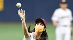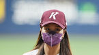 [OSEN=고척, 민경훈 기자] 14일 오후 서울 고척 스카이돔에서 ‘2021 신한은행 SOL KBO 리그’키움 히어로즈와 한화 이글스의 경기가 열렸다.경기 전 라붐 지엔이 그라운드 위에서 시구를 하고 있다./rumi@osen.co.kr