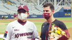 [OSEN=고척, 민경훈 기자] 14일 오후 서울 고척 스카이돔에서 ‘2021 신한은행 SOL KBO 리그’ 키움 히어로즈와 한화 이글스의 경기가 열릴 예정인 가운데 그라운드 훈련이 진행됐다.경기 전 키움 브리검이 박병호와 오주원과