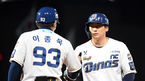 [OSEN=창원, 이대선 기자] 14일 오후 경상남도 창원NC파크에서 ’2021 신한은행 SOL KBO 리그' NC 다이노스와 KIA 타이거즈의 경기가 열렸다.7회말 1사 1,3루에서 NC 나성범이 좌전 적시타를 치고 이종욱 코치와 하이파이브를 하고 있다