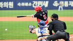 [OSEN=고척, 민경훈 기자] 15일 오후 서울 고척 스카이돔에서 ‘2021 신한은행 SOL KBO 리그’ 키움 히어로즈와 한화 이글스의 경기가 열렸다.1회초 1사 주자 2,3루 키움 박병호의 우익수 희생플라이때 홈을 밟은 김웅빈이 덕아