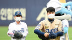 [OSEN=창원, 이대선 기자] 15일 오후 경상남도 창원NC파크에서 ’2021 신한은행 SOL KBO 리그' NC 다이노스와 KIA 타이거즈의 경기가 열렸다.경기에 앞서 NC 임창민이 은사 최윤탁 선생님의 공을 받고 있다. /sunday@osen.co.kr