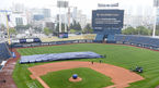 [OSEN=창원, 이대선 기자] 15일 오후 경상남도 창원NC파크에서 ’2021 신한은행 SOL KBO 리그' NC 다이노스와 KIA 타이거즈의 경기가 열렸다.경기에 앞서 비가 잦아들자 경기 요원들이 방수포를 걷고 있다. /sunday@osen.co.kr