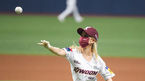[OSEN=고척,박준형 기자] 16일 오후 고척스카이돔에서 '2021 신한은행 SOL KBO리그' 키움 히어로즈와 한화 이글스의 경기가 진행됐다.경기 앞서 걸그룹 써드아이 유지가 시구를 하고 있다. / soul1014@osen.co.kr