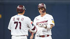 [OSEN=고척,박준형 기자] 16일 오후 고척스카이돔에서 '2021 신한은행 SOL KBO리그' 키움 히어로즈와 한화 이글스의 경기가 진행됐다.8회말 무사 1,2루 키움 박병호가 1타점 적시 2루타를 날리고 오태근 1루 코치와 하이파이브를 하고