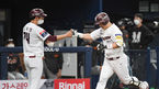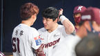 [OSEN=고척,박준형 기자] 16일 오후 고척스카이돔에서 '2021 신한은행 SOL KBO리그' 키움 히어로즈와 한화 이글스의 경기가 진행됐다.7회말 1사 1,3루 키움 박동원이 3점 홈런을 날리고 이정후의 축하를 받고 있다. 박동원은 5회 이어 7