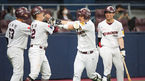[OSEN=고척,박준형 기자] 16일 오후 고척스카이돔에서 '2021 신한은행 SOL KBO리그' 키움 히어로즈와 한화 이글스의 경기가 진행됐다.7회말 1사 1,3루 키움 박동원이 3점 홈런을 날리고 송우현과 전병우의 축하를 받고 있다. 박동원은 5