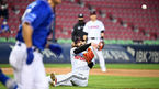 [OSEN=인천, 최규한 기자] 17일 오후 인천 SSG랜더스필드에서 ‘2021 신한은행 SOL KBO리그’ SSG 랜더스와 두산 베어스의 경기가 열렸다.4회초 2사 만루 상황 두산 허경민의 달아나는 2타점 적시타 때 SSG 포수 이재원의 2루 송구