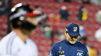 [OSEN=잠실, 지형준 기자] 18일 오후 서울 잠실야구장에서 ‘2021 신한은행 SOL KBO리그’ LG 트윈스와 NC 다이노스의 경기가 열렸다.7회말 2사 1루에서 NC 임창민이 LG 홍창기에 이어 오지환에 볼넷을 허용하며 아쉬워하고 있다. /j