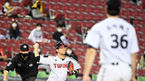 [OSEN=잠실, 지형준 기자] 18일 오후 서울 잠실야구장에서 ‘2021 신한은행 SOL KBO리그’ LG 트윈스와 NC 다이노스의 경기가 열렸다.6회초 1사 1,2루에서 LG 정주현이 NC 권희동의 3루땅볼애 박민우를 포스아웃시키고 1루로 송구하